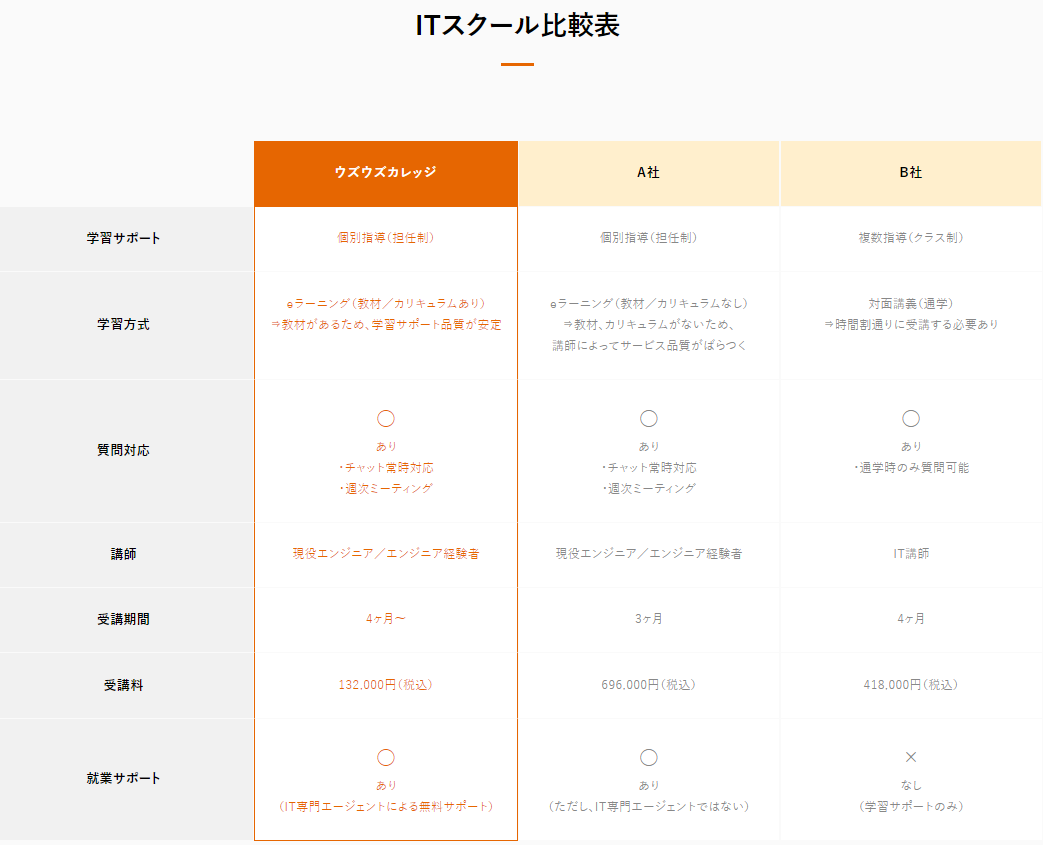 スクールの学習のカリキュラムは